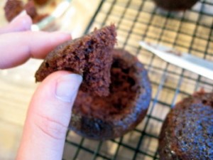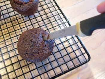 Uma das maneiras mais eficientes é utilizando uma faca afiada. Insira a faca no cupcake já frio, de forma a retirar um pedaço em forma de cone.